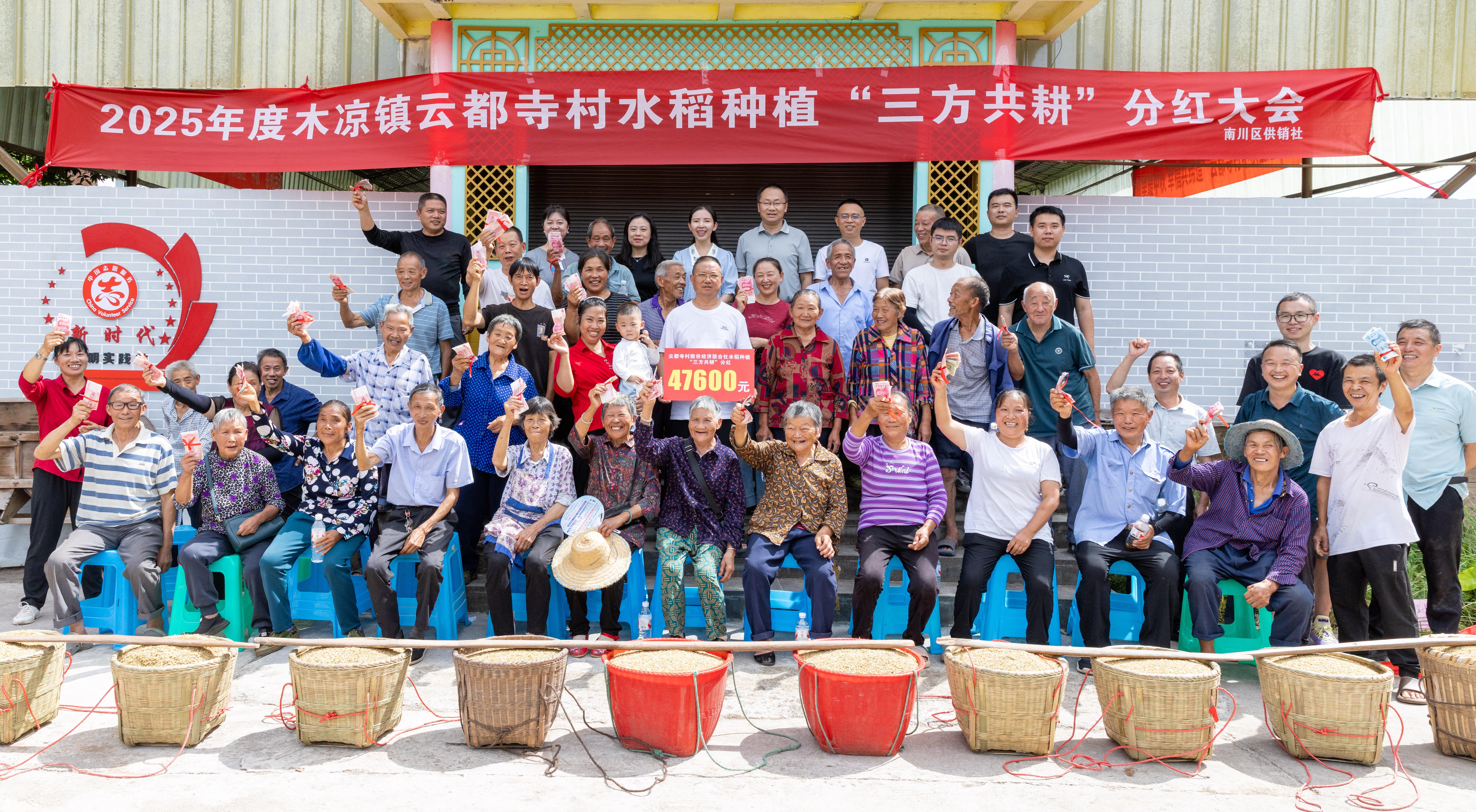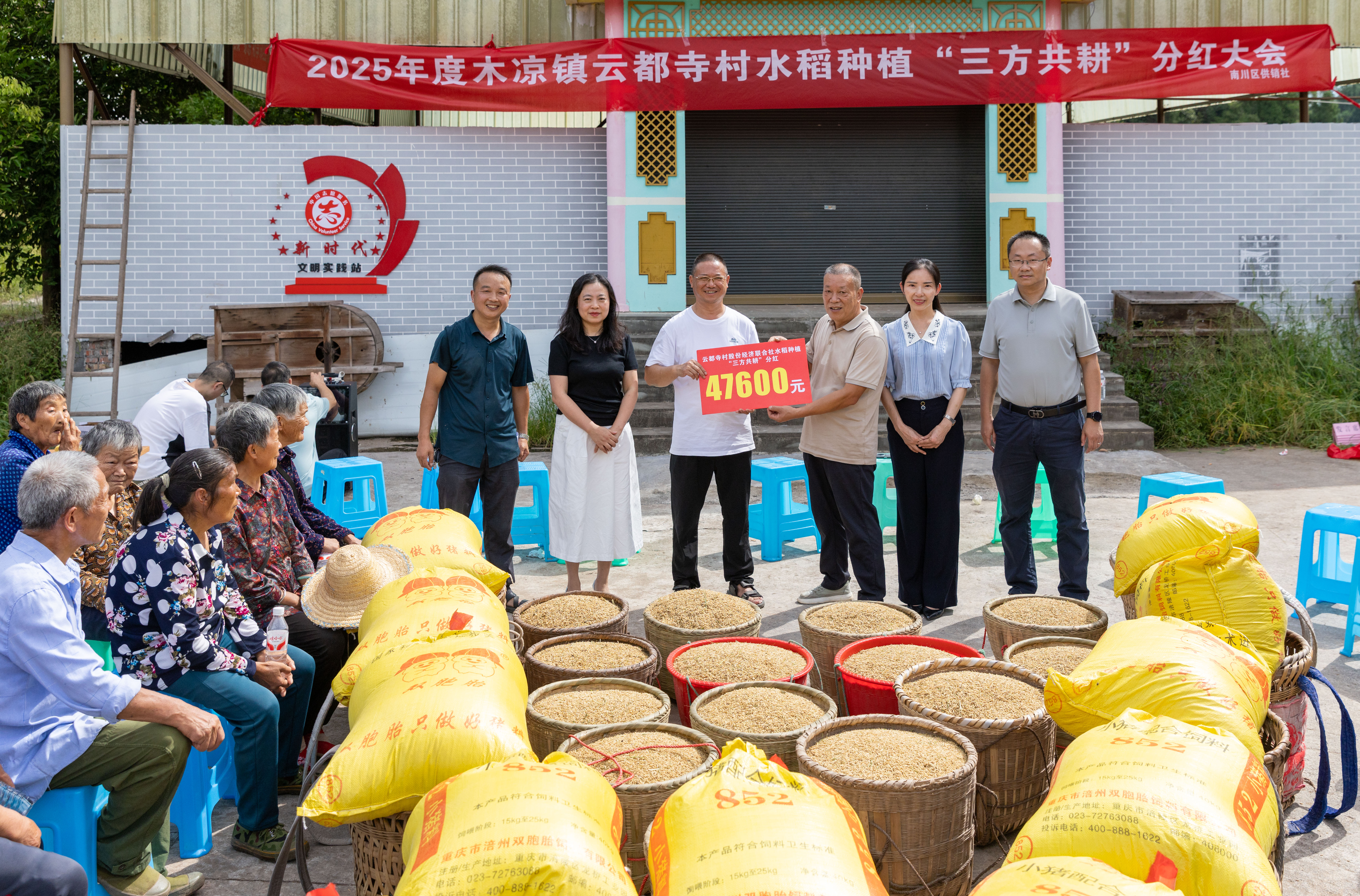农民变“股民” 喜领“共富粮”——南川区供销社云都寺村水稻种植“三方共耕”分红大会